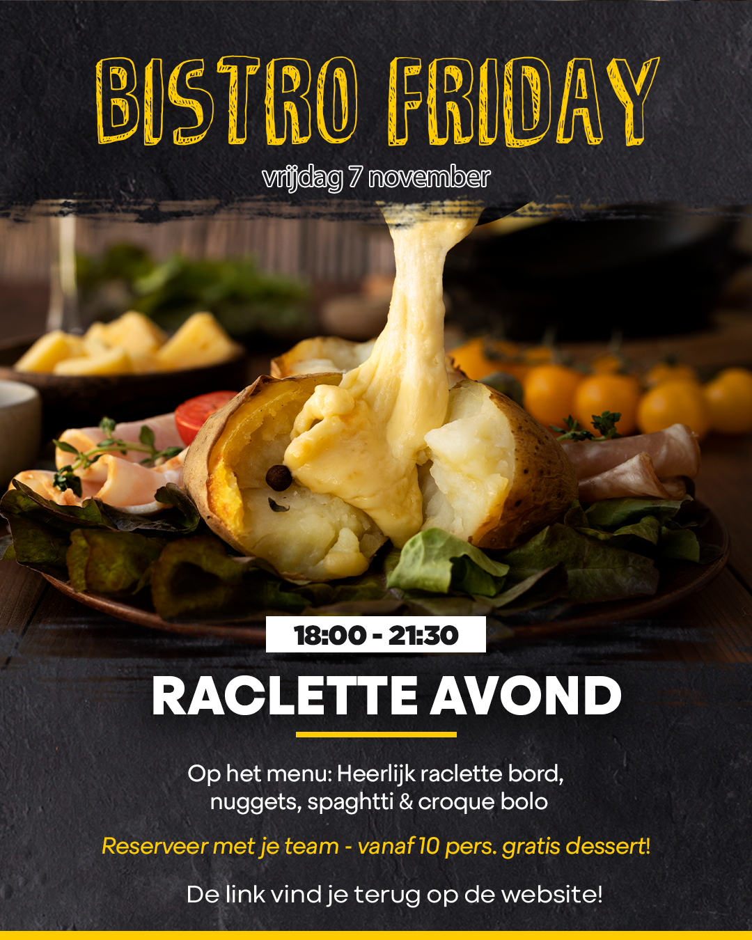Nu vrijdag 7 november een nieuwe Bistro Friday, en deze week op het menu Raclette.